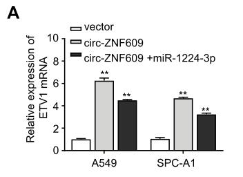 Conclusion: Circ-ZNF609 enhances LAUD progression by increasing oncogenic EVT1 expression via sponging miR-1224-3p, revealing that circ-ZNF609/miR-1224-3p/ETV1 axis may be a promising therapeutic target for LAUD treatment.