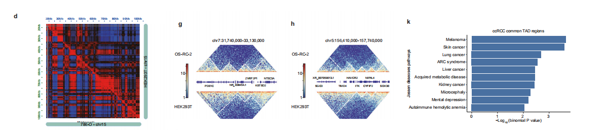 综上所述,我们的研究结果表明,肾透明细胞癌(ccRCC)在区室和拓扑关联结构域(TAD)水平上均会发生广泛的癌症特异性三维基因组重塑。