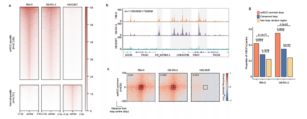 综上所述,我们的研究结果表明,ccRCC的发病机制涉及广泛的增强子重编程及局部染色质相互作用的重塑。
