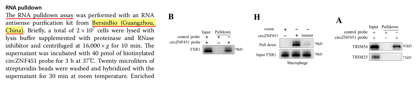 作者使用伯信生物明星产品RNA pulldown试剂盒进行了上述分子互作调控机制的研究。