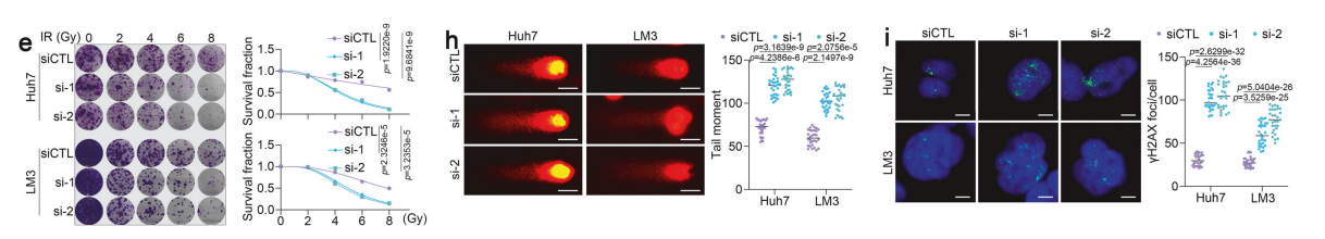 首先,我们发现SRSF11沉默显著加剧了过表达RAD52的 HCC 细胞中电离辐射(IR)引起的DNA损伤,这一结果通过集落形成实验、彗星实验、 γH2AX 染色(以及有限HR得以证实。