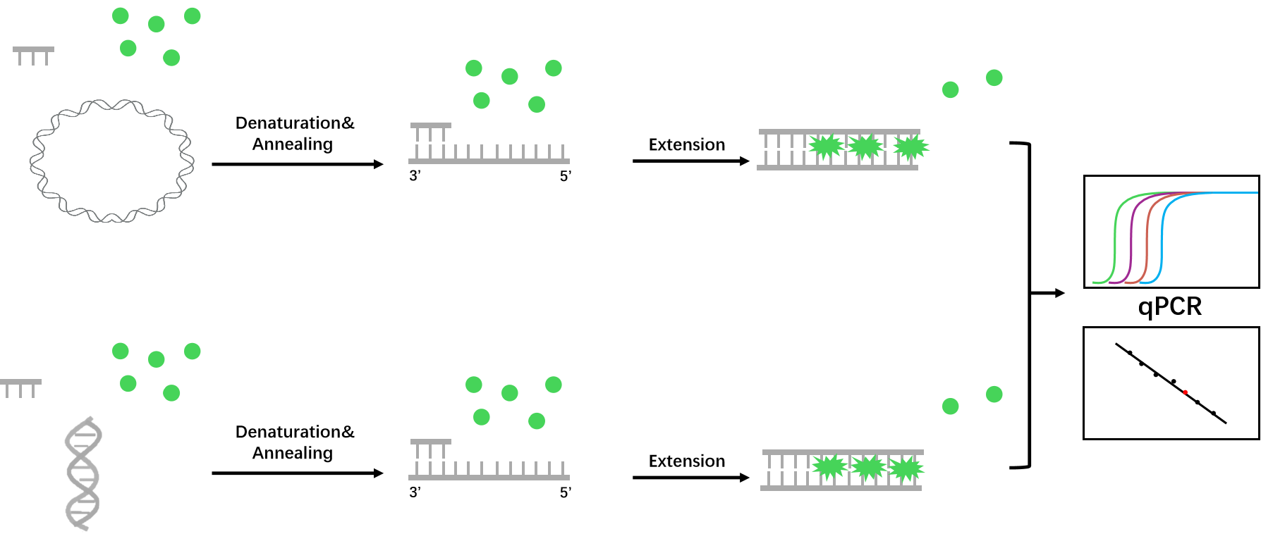 试剂盒采用qPCR方法特异性扩增样本mtDNA与核基因组DNA,通过建立标准曲线,对线粒体拷贝数进行定量。