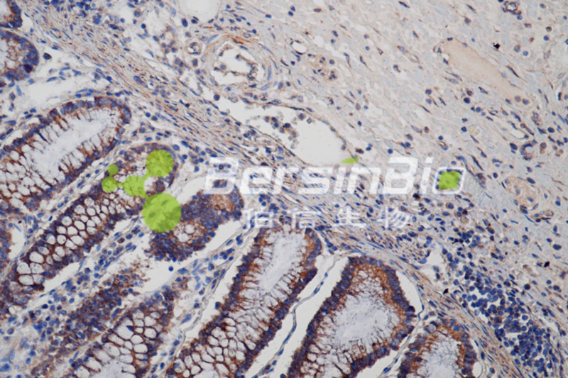 免疫组织化学(Immunohistochemistry)又称免疫细胞化学,是根据抗原抗体反应和化学显色原理,组织切片或细胞标本中的抗原和一抗结合,再利用一抗与标记生物素的二抗进行反应,前者再用标记辣根过氧化物酶(HRP)或碱性磷酸酶(AKP)等的抗生物素(如链霉亲和素)结合,最后通过呈色反应在光学显微镜下可清晰看见细胞内发生的抗原抗体反应物,从而原位确定特定蛋白质的分布和含量。